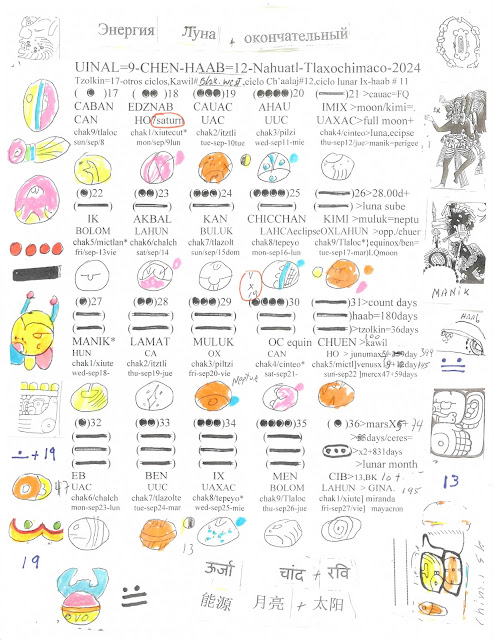 (uinal) bolom CHEN mes 9 maya de septiembre 8 al 27 del 2024 (año europeo) año (haab) maya(o año